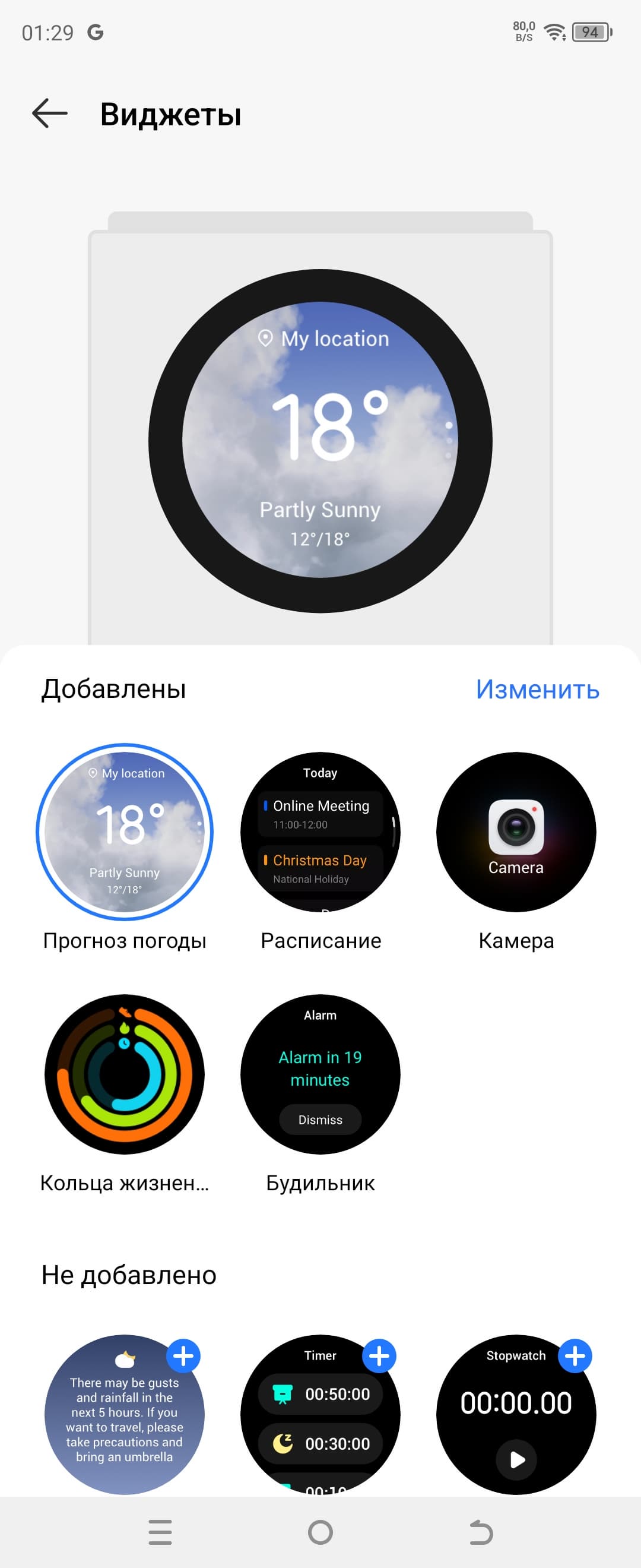 На внешний экран можно вывести анимированную картинку (забавных животных в стиле, любимом азиатами), но есть и вариант со множеством специальных виджетов для этого дисплея — от прогноза погоды до подсчета калорий.