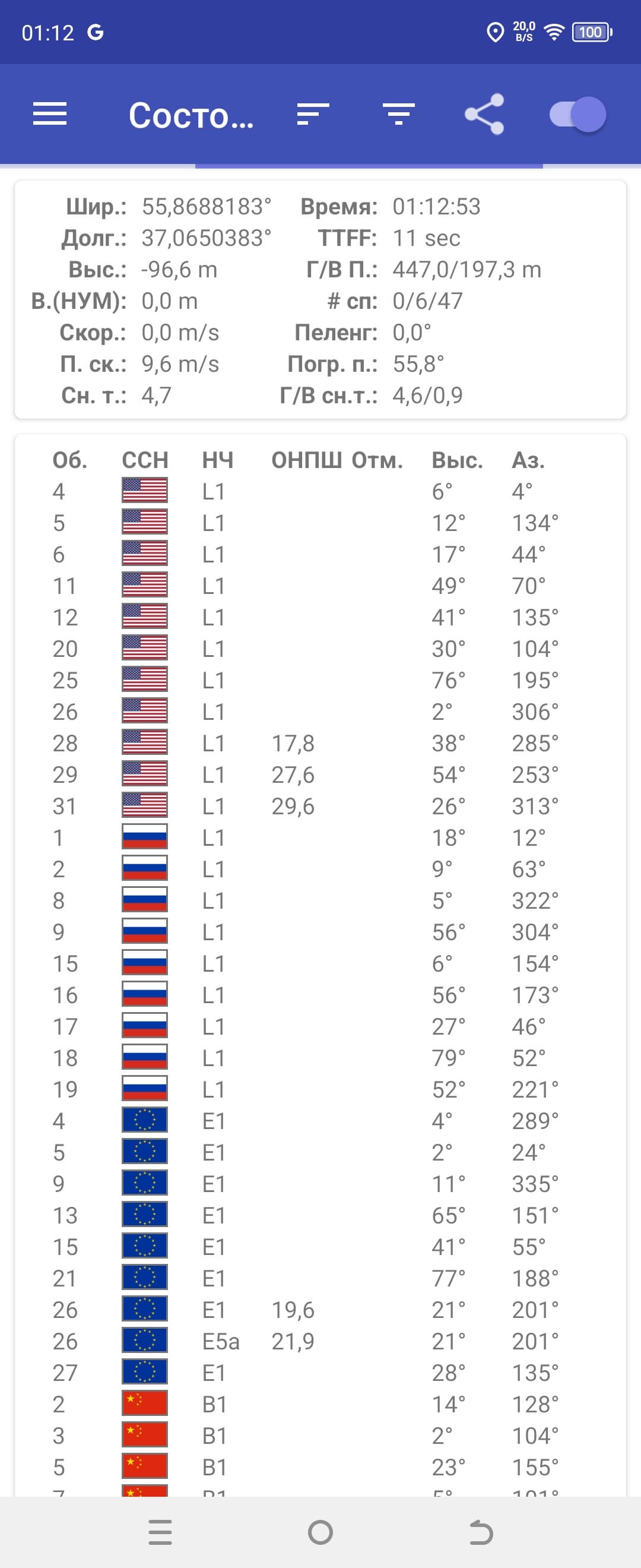 Однодиапазонный модуль спутниковой навигации работает с GPS, а также с Глонасс, BDS и Galileo. Первые спутники при холодном старте обнаруживаются быстро, точность позиционирования не вызывает претензий.