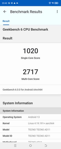 - Операционная система Android 13, HiOS 13.5