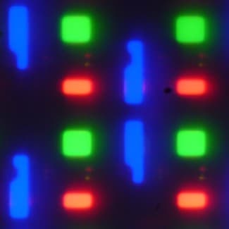 Полноцветное изображение создается с помощью субпикселей трех цветов — красного (R), зеленого (G) и синего (B) — в равном количестве.