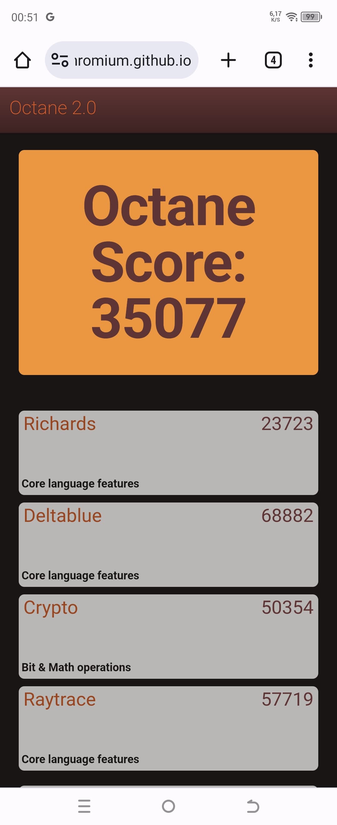 | Google Octane 2 (больше — лучше) | 35077 | 30849 | 36245 | 31919 | 59248 |