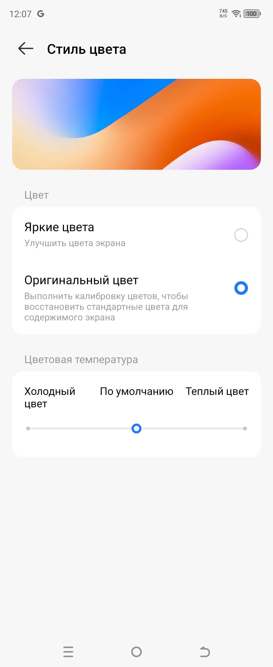 Фотография выше получена после выбора профиля Оригинальный цвет в настройках экрана. Всего профилей два.