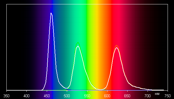 В этом случае спектры компонент (то есть спектры чистых красного, зеленого и синего цветов) очень хорошо разделены: