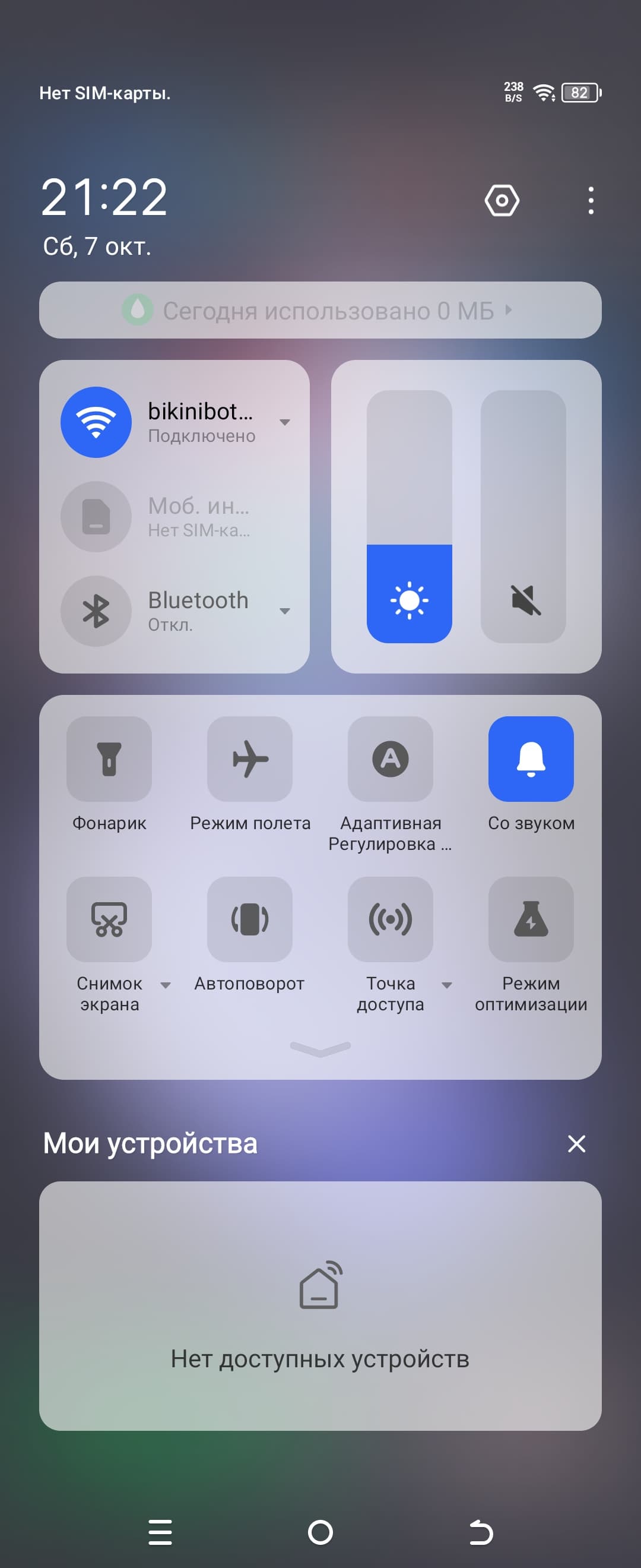 При ручном управлении яркостью и при выводе белого поля во весь экран максимальное значение яркости составило примерно 480 кд/м² в обычных условиях, на очень ярком свету при включенной опции Режим высокой яркости оно повышается до 770 кд/м². Максимальная яркость очень высокая. В данном случае чем меньше площадь белого на экране, тем он светлее, то есть фактическая максимальная яркость белых участков будет почти всегда еще выше. В итоге, учитывая отличные антибликовые свойства, читаемость днем на солнце, должна быть на приемлемом уровне, а темная тема не только экономит заряд аккумулятора, но способствует лучшей разборчивости информации на экране в условиях высокой освещенности. Минимальное значение яркости при ручном управлении — 6 кд/м², то есть пониженный уровень яркости без проблем позволяет использовать устройство даже в полной темноте. Есть автоматическая регулировка яркости по датчику освещенности (он расположен под экраном в верхней части ближе к левому краю по горизонтали) . В автоматическом режиме при изменении внешних условий освещенности яркость экрана как повышается, так и понижается. Работа этой функции зависит от положения ползунка регулировки яркости: им пользователь может попытаться выставить желаемый уровень яркости в текущих условиях. Если оставить всё по умолчанию, то в полной темноте функция автояркости уменьшает яркость до 25 кд/м² (нормально), в условиях освещенного искусственным светом офиса (примерно 550 лк) устанавливает на 200 кд/м² (подходит), а условно под прямыми лучами солнца повышает до 770 кд/м² (до максимума, так и нужно; опция Режим высокой яркости включена). Результат по умолчанию нас удовлетворил, но для эксперимента попробовали понизить яркость в полной темноте. Яркость стала ниже, но после цикла повышения внешней освещенности и ее снижения, всё вернулось к тем же значениям, что были до вмешательства. Получается, что функция автоподстройки яркости работает более-менее адекватно, но не позволяет пользователю настраивать свою работу под индивидуальные требования.
