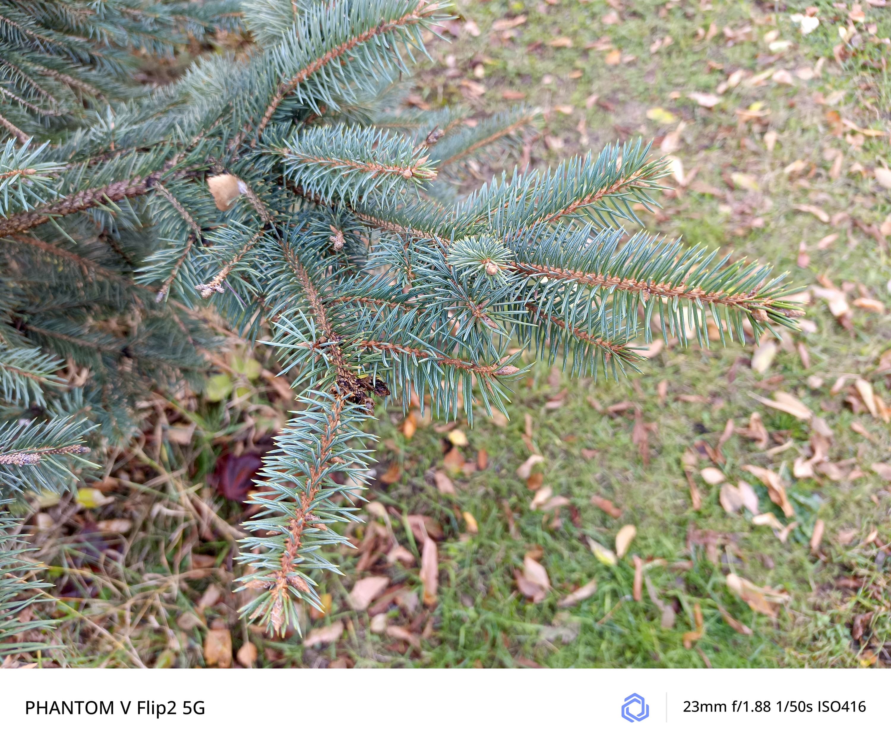 Смартфон Tecno Phantom V Flip2 5G оснащен двумя полноценными снимающими тыльными камерами: основной и широкоугольной. Длиннофокусного объектива и оптического зума здесь нет.