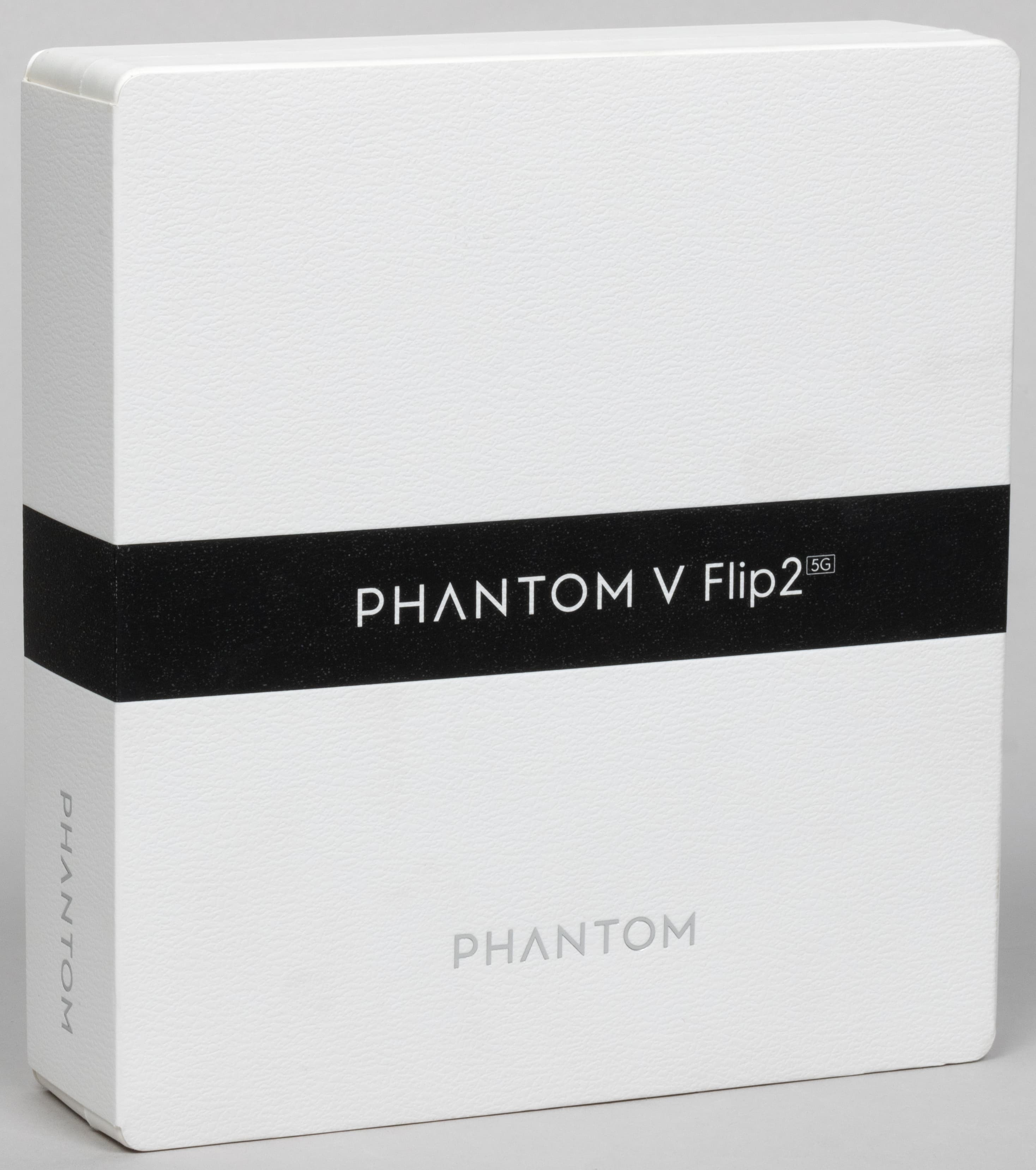 Смартфон Tecno Phantom V Flip2 5G поставляется в стандартной картонной коробке с минималистичным оформлением.