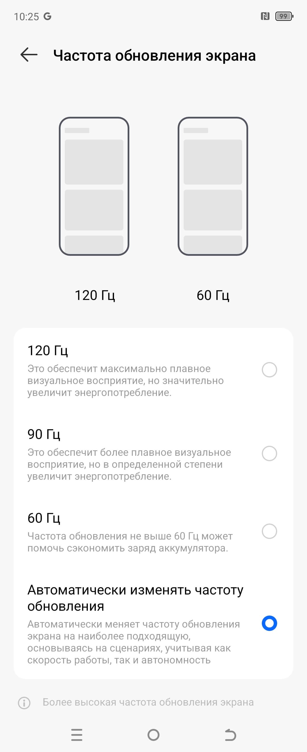 В настройках экрана можно включить режим с повышенной до 90 и 120 Гц частотой обновления: