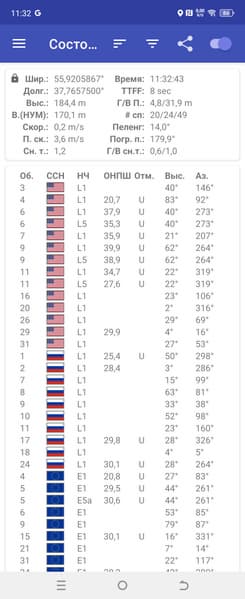 - GPS, Galileo, Глонасс, QZSS, BDS