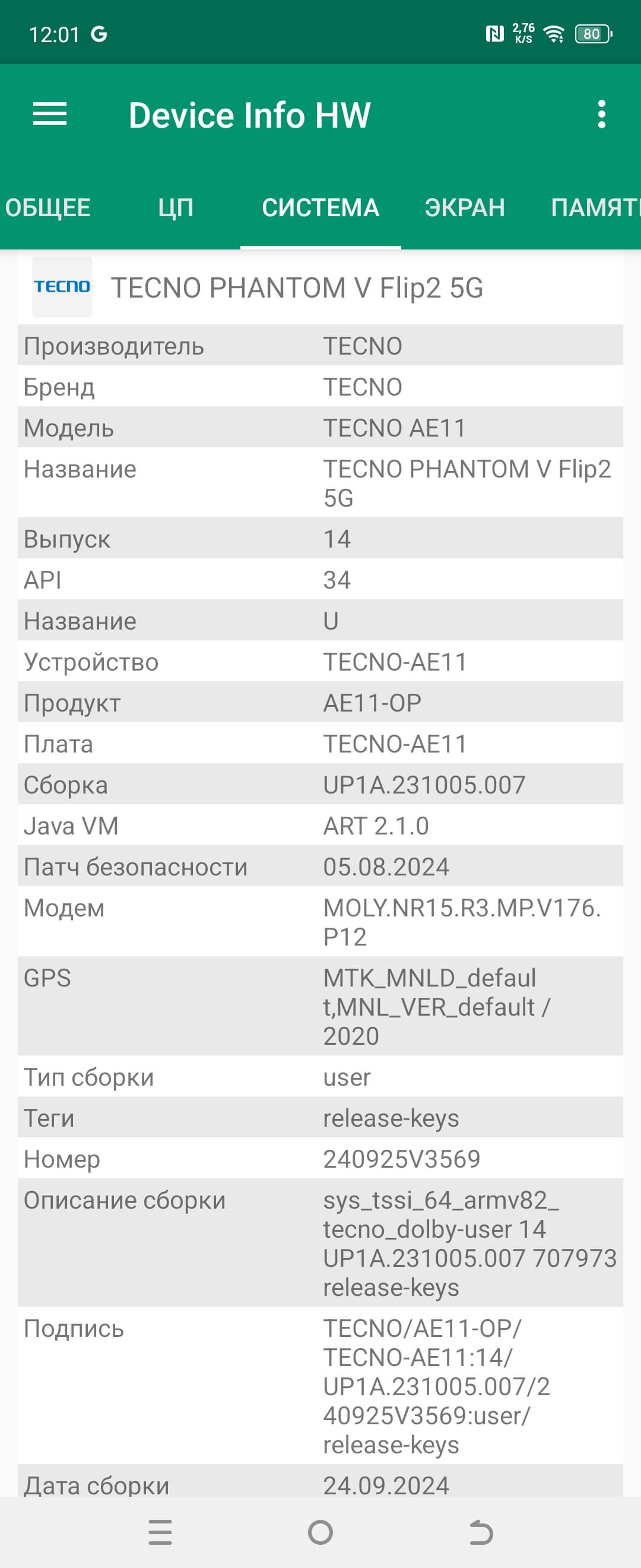 В качестве программной платформы Tecno Phantom V Flip2 5G использует ОС Android 14 с собственной оболочкой HiOS 14. Интерфейс добротный, хорошо оптимизированный, без навязчивой рекламы, с полным доступом ко всем сервисам Google. Верхняя шторка разделена на две части в зависимости от места оттягивания.