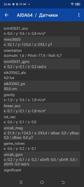 Голос собеседника в динамике громкий, речь разборчива. Вибромотор очень хорошо ощутим, весьма мощный. Среди встроенных датчиков имеется все необходимые, вплоть до магнитометра и гироскопа.