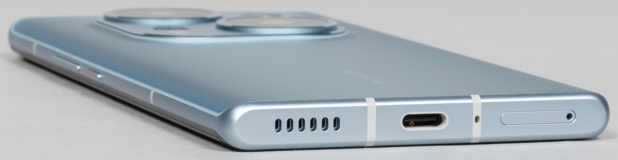 Помимо разъема для карт на торце снизу размещены динамик, микрофон и разъем USB 2.0 Type-C. 3,5-миллиметровый аудиовыход для наушников у смартфона отсутствует.