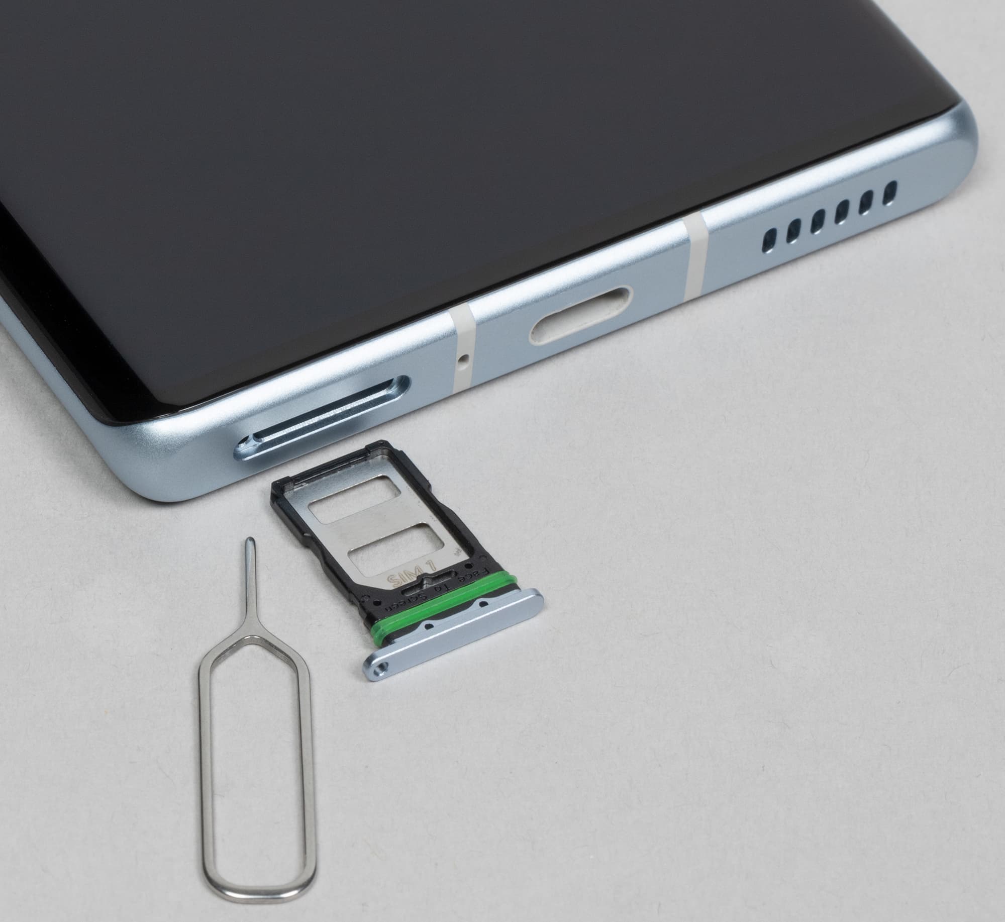 В разъем на нижнем торце можно установить две карты Nano-SIM — с одной и с другой стороны салазок. Место для карты памяти microSD не предусмотрено. Нет и поддержки e-SIM.