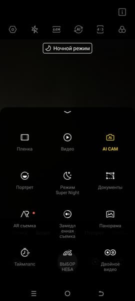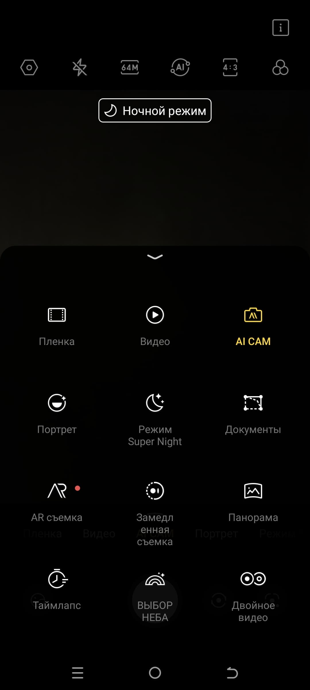 Интерфейс управления съемкой своеобразный у всех смартфонов Tecno: тут нет привычного для всех раздела «Еще» с выбором дополнительных режимов в горизонтальном меню. Его необходимо вытягивать снизу вверх от иконки «AI cam». Что, кстати, само по себе говорит о том, что здесь вся съемка автоматически обрабатывается с помощью ИИ (AI), и отключить эту функцию нельзя. Как нельзя найти в смартфонах Tecno режим ручного управления съемкой. Нет и отдельного режима для макросъемки.