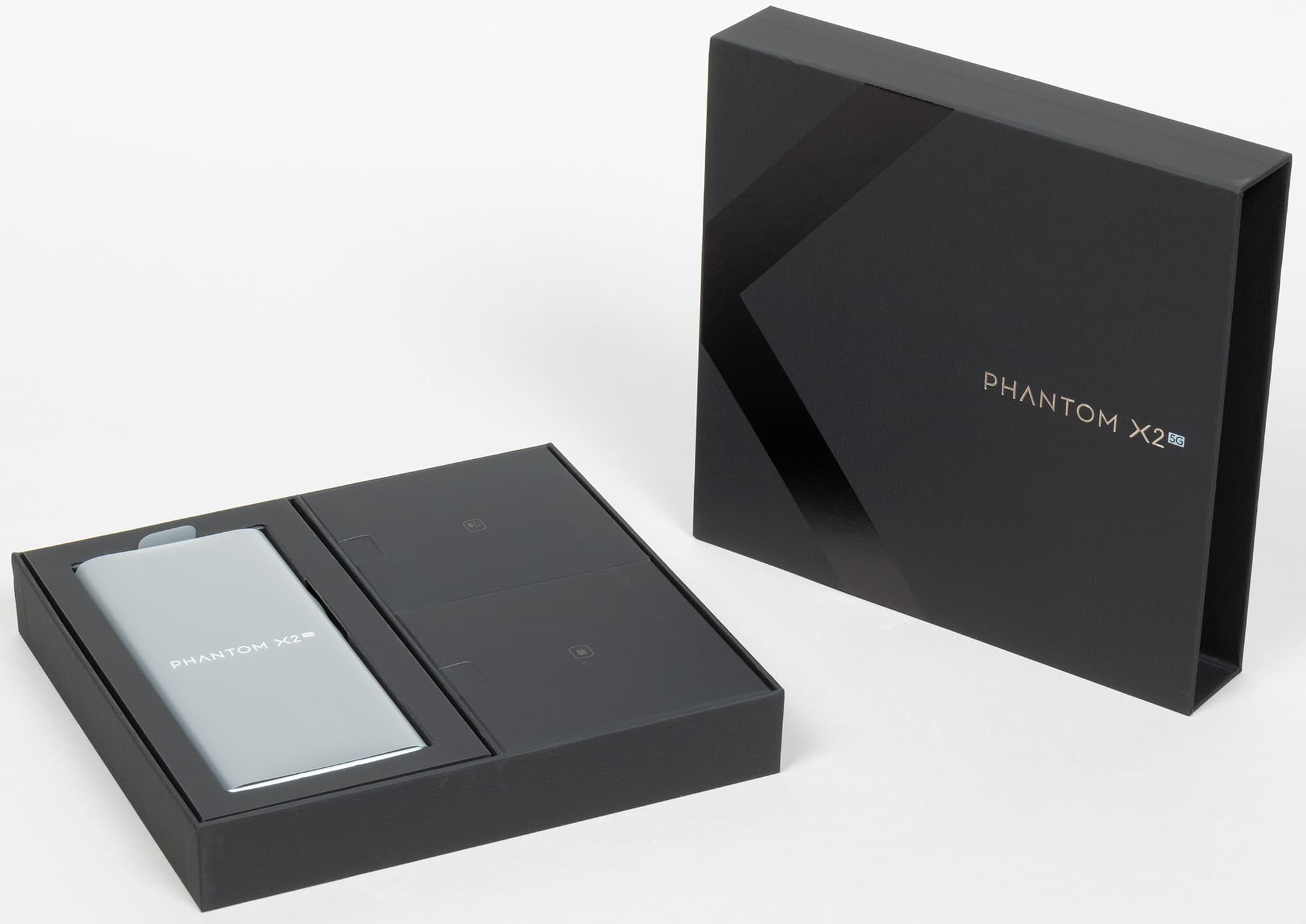Tecno Phantom X2 поставляется в стильно оформленной упаковке премиального вида с содержимым, разложенным по отдельным коробочкам.