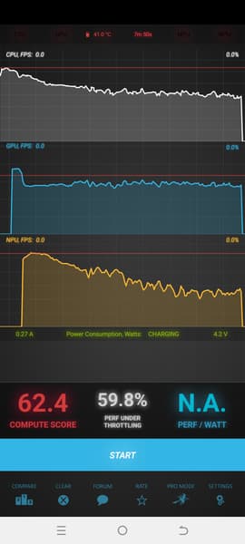 Тест на снижение производительности при нагреве мы проводим с помощью программы Burnout Benchmark, которая позволяет нагружать CPU, GPU и NPU: