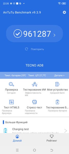 | AnTuTu (v9.x) (больше — лучше) | 961287 | 1034192 | 835915 | 727479 | 492381 |