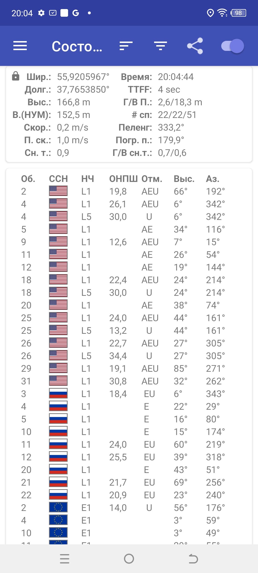 Навигационный модуль работает с GPS (L1+L5), Глонасс, BDS. Первые спутники при холодном старте обнаруживаются быстро, точность позиционирования не вызывает претензий.