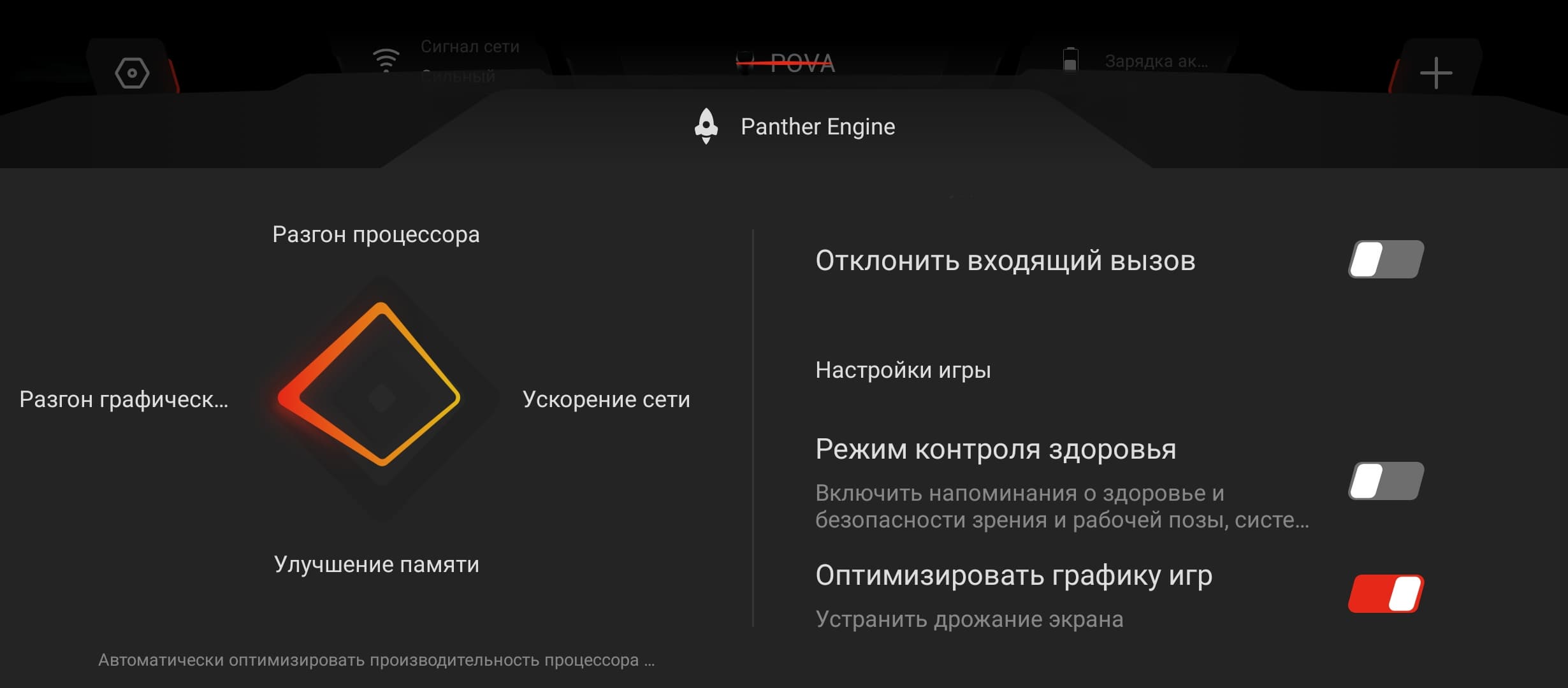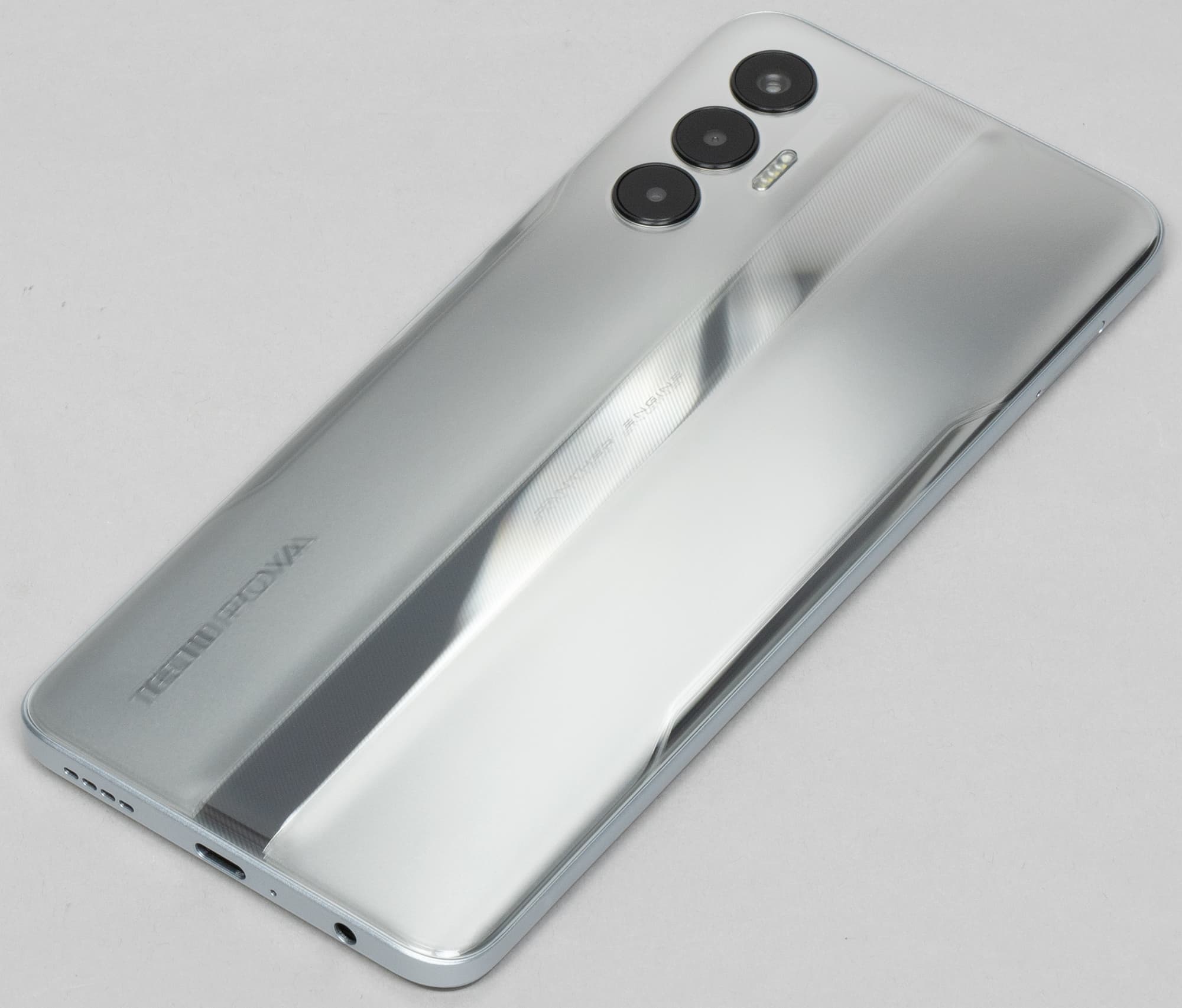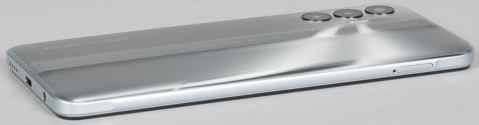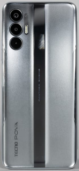 Корпус Tecno Pova 3 выполнен в смелом и броском дизайне с оформлением вставками, характерным для игровых устройств. Здесь действительно упор делается на игровую составляющую и наличие продвинутого игрового режима, потому даже на поверхность зеркальной вставки на крышке вынесено название игрового движка «Panther Engine».