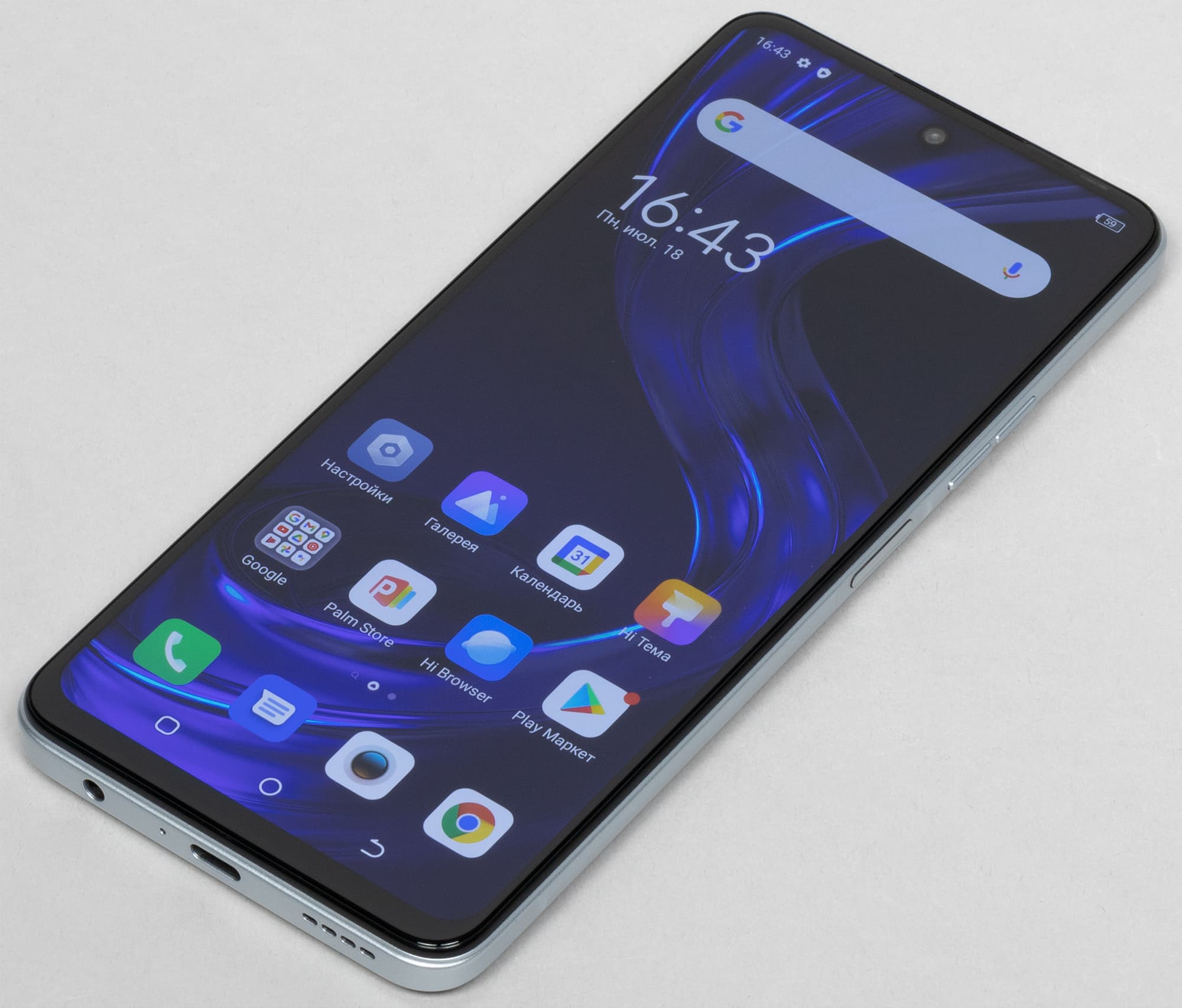 Экран у смартфона заметно темнее (яркость по фотографиям 97 против 107 у Nexus 7). Двоение отраженных объектов в экране Tecno Pova 3 очень слабое, это свидетельствует о том, что между слоями экрана (конкретнее между внешним стеклом и поверхностью ЖК-матрицы) нет воздушного промежутка (экран типа OGS — One Glass Solution). За счет меньшего числа границ (типа стекло/воздух) с сильно различающимися коэффициентами преломления такие экраны лучше смотрятся в условиях интенсивной внешней засветки, но вот их ремонт в случае потрескавшегося внешнего стекла обходится гораздо дороже, так как менять приходится экран целиком. На внешней поверхности экрана есть специальное олеофобное (жироотталкивающее) покрытие (по эффективности заметно лучше, чем у Nexus 7), поэтому следы от пальцев удаляются значительно легче, а появляются с меньшей скоростью, чем в случае обычного стекла.