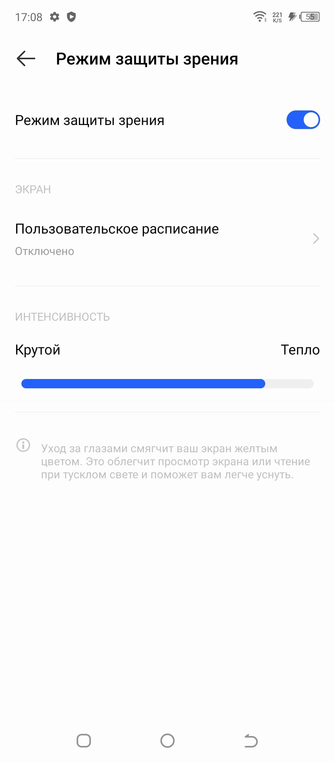 Также присутствует настройка, позволяющая снизить интенсивность синей компоненты.