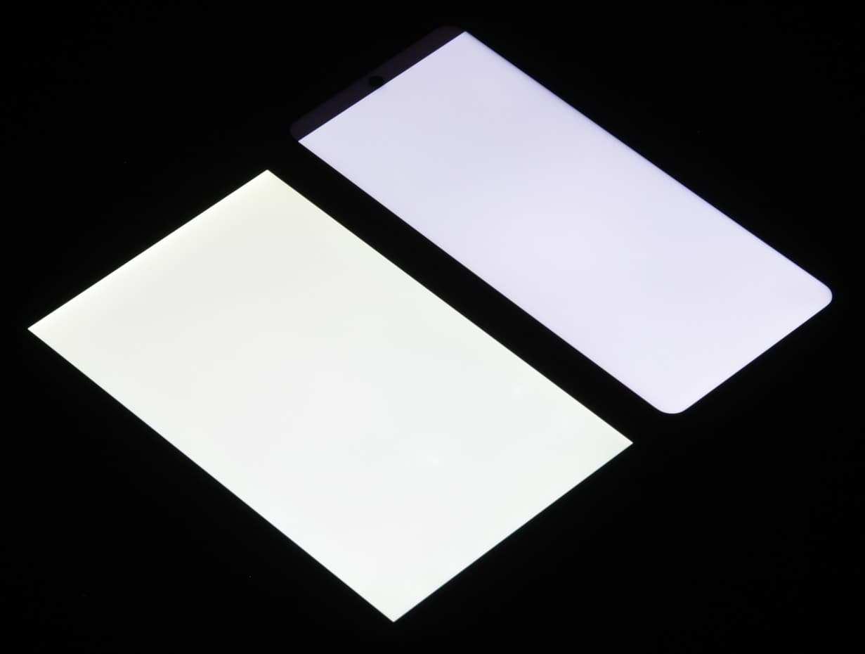 При перпендикулярном взгляде равномерность черного поля средняя (для наглядности яркость подсветки на смартфоне установлена на максимум):