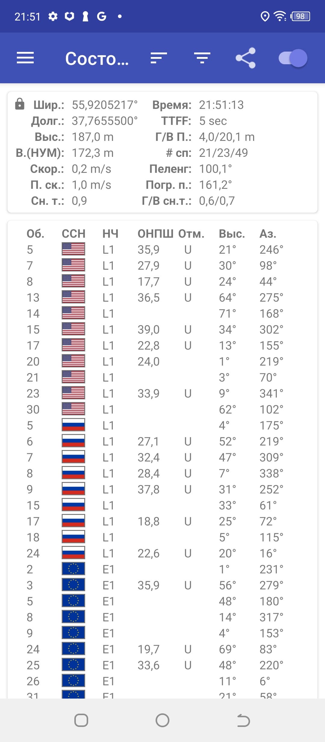 Навигационный модуль работает с GPS (с A-GPS), Глонасс, Galileo и BDS. Первые спутники даже при холодном старте обнаруживаются быстро, точность позиционирования не вызывает претензий.
