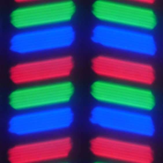 В данном смартфоне используется матрица типа IPS. Микрофотографии демонстрируют типичную для IPS структуру субпикселей: