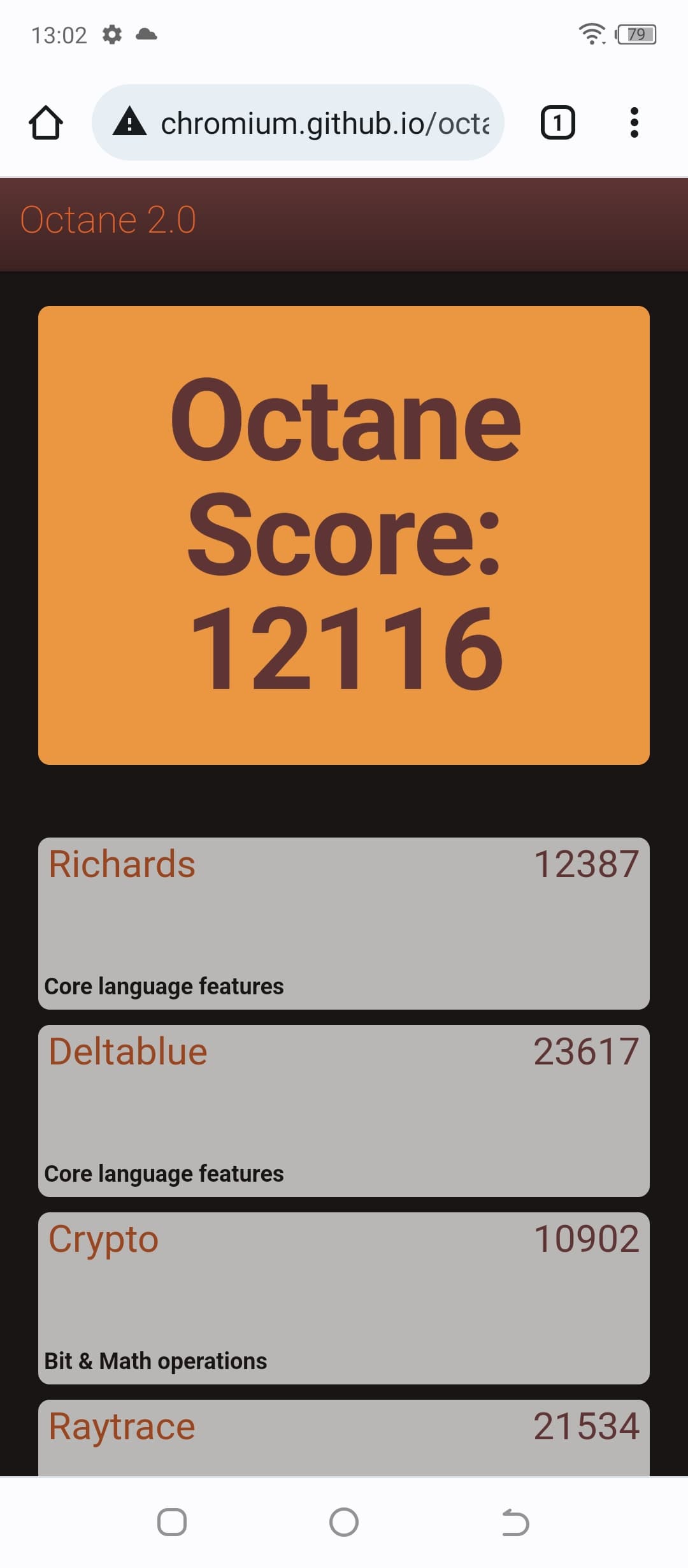 | Google Octane 2 (больше — лучше) | 12116 | 19887 | 19928 | 18041 | 16670 |