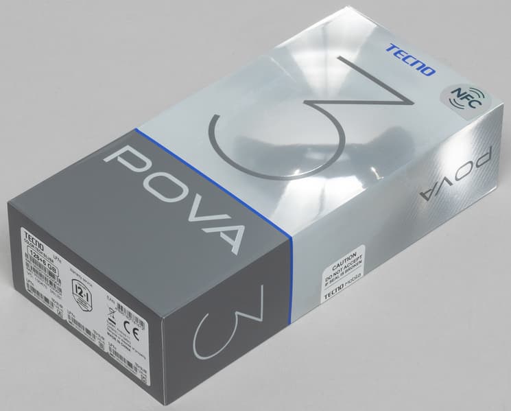 Tecno Pova 3 поставляется в твердой картонной упаковке с ярким оформлением и достойной комплектацией.