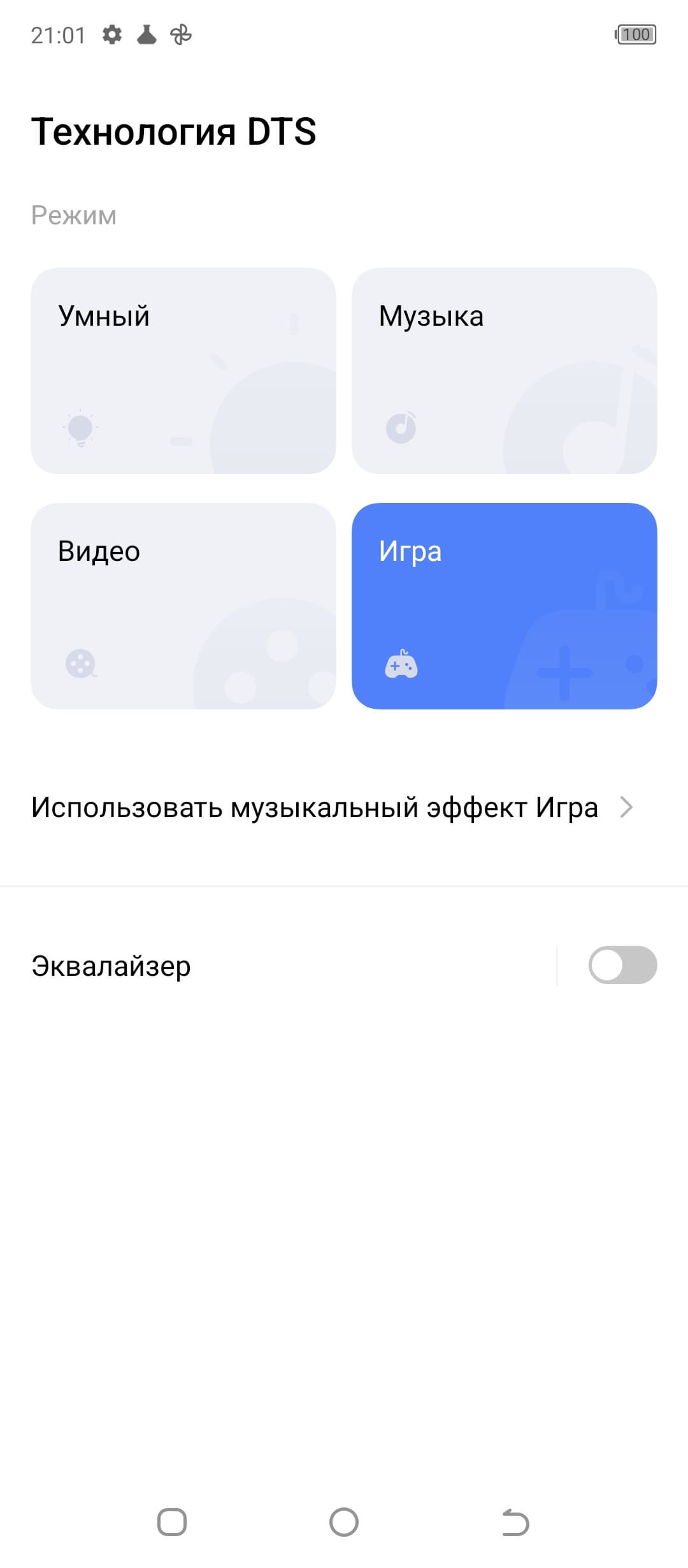 На обоих торцах смартфона установлены стереодинамики, которые выдают мощное и чистое звучание. Для настройки используются пресеты системы DTS и пятиполосный эквалайзер. Просмотр видео, прослушивание музыки и игровой процесс от такого звукового сопровождения вкупе с мощным вибромотором здорово выигрывают.