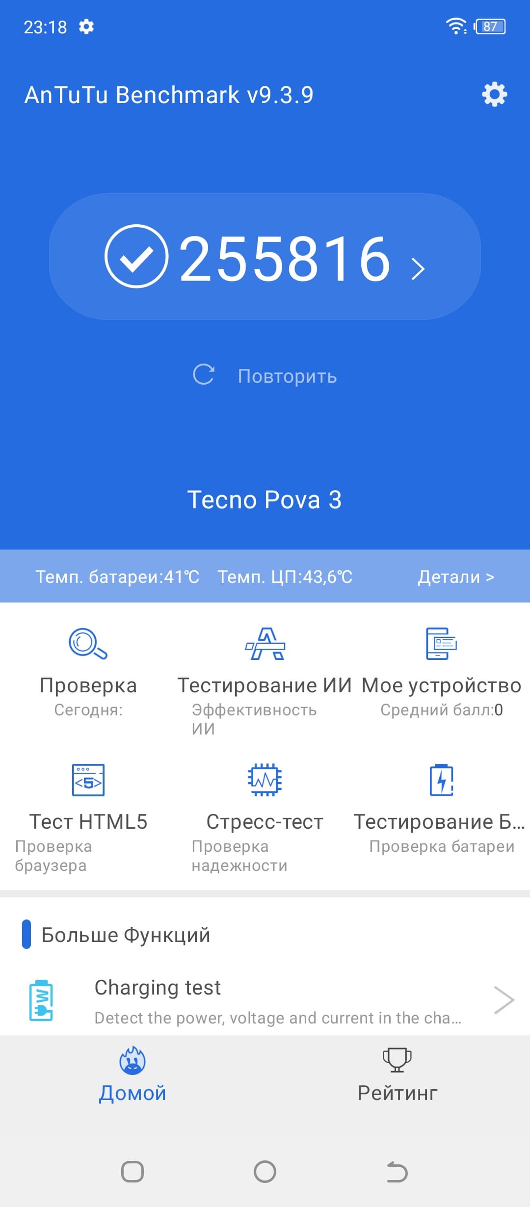 Mediatek Helio G88 вполне способна еще обеспечить плавную и относительно быструю работу интерфейса и приложений. В играх смартфон не притормаживает, хотя запустить их на высоких настройках графики не удастся. Согласно официальному описанию, в играх должен работать некий «движок Panther Engine 2.0 с игровой технологией HyperEngine 2.0 Lite». В играх смартфон сильно нагревается.