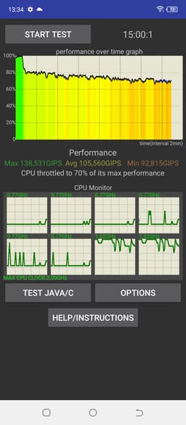 Тестирование традиционно проводилось на обычном уровне энергопотребления без использования функций энергосбережения, хотя таковые в аппарате имеются. Условия тестирования: выставлен минимальный комфортный уровень яркости (примерно 100 кд/м²). Тесты: беспрерывное чтение в программе Moon+ Reader (со стандартной, светлой темой); беспрерывный просмотр видео в HD-качестве (720р) через домашнюю сеть Wi-Fi; игра Injustice 2 с автонастройками графики.