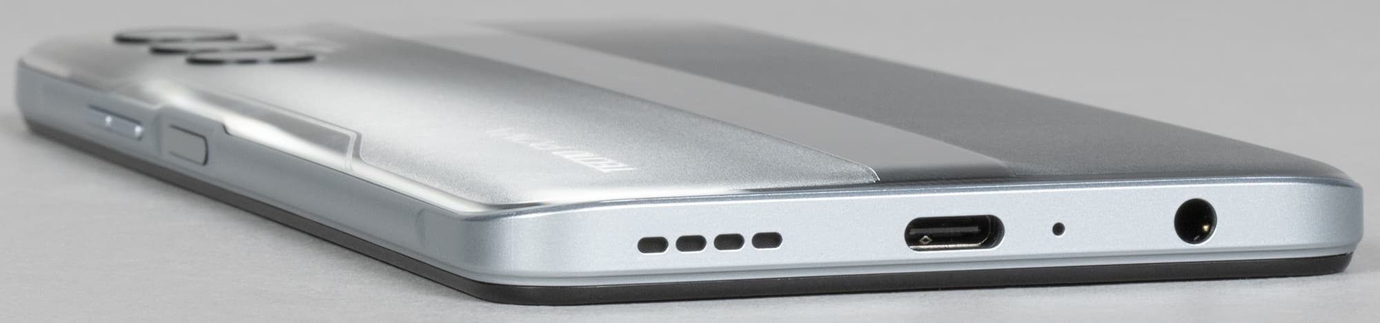 На нижнем торце размещены 3,5-миллиметровый аудиовыход для наушников, динамик, микрофон и разъем USB Type-C.