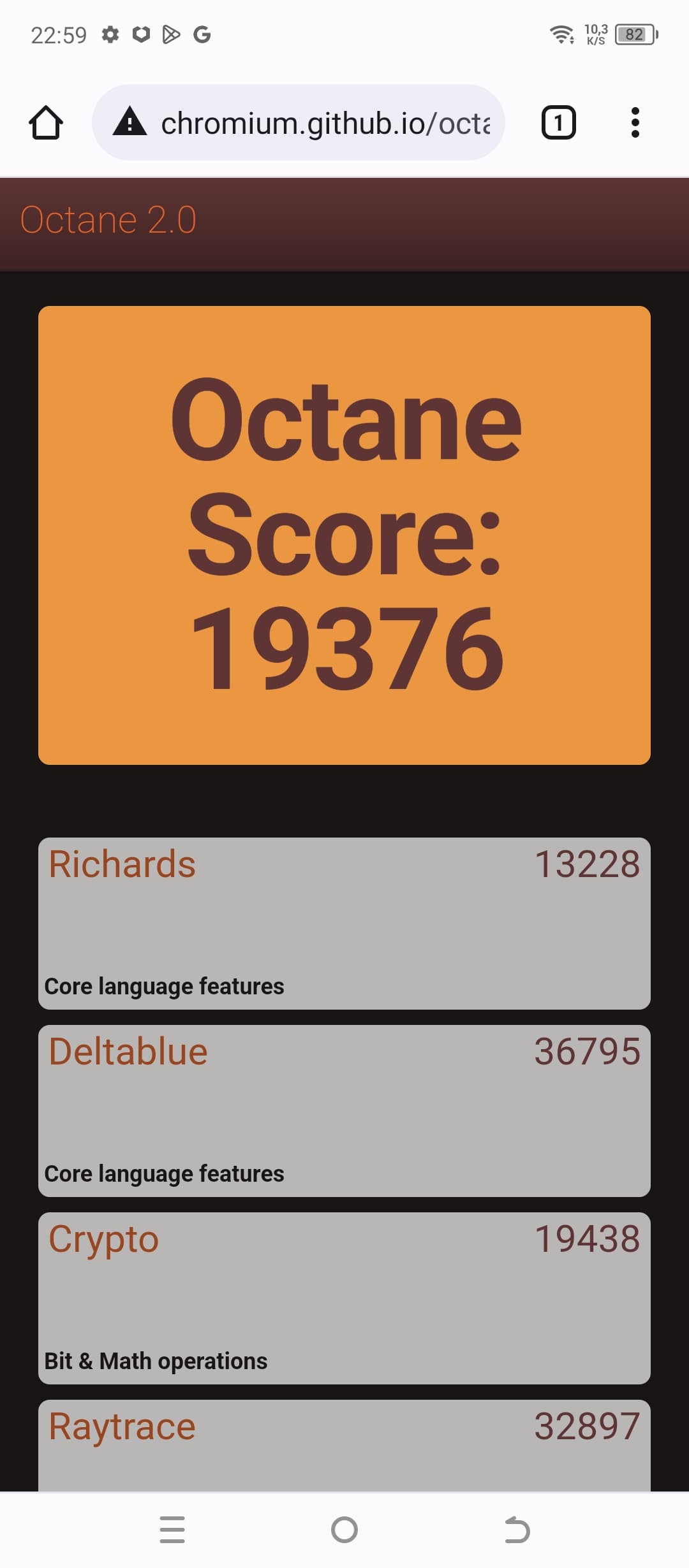 | Google Octane 2 (больше — лучше) | 19376 | 27796 | 29329 | 27070 | 19194 |