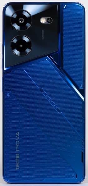 Tecno Pova 5 Free Fire Pro имеет современный актуальный дизайн с широкими плоскими боковинами и прямыми поверхностями, нет здесь ни зауженностей на боках, ни загнутых стекол. Аппарат, может быть, и не максимально комфортно ложится в руку, но очень надежно удерживается за широкие бока.