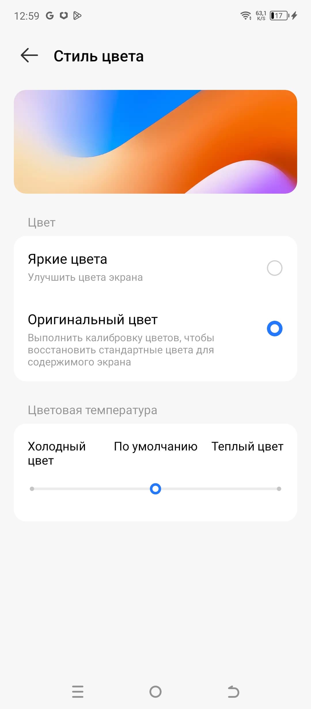 Фотография выше получена после выбора профиля Оригинальный цвет в настройках экрана. Всего профилей два.