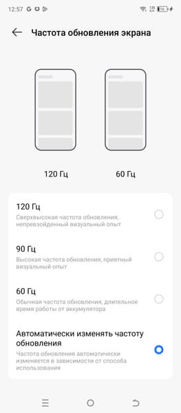 В настройках экрана можно включить режим с повышенной до 90 и 120 Гц частотой обновления, что приводит как минимум к увеличению плавности прокрутки списков в меню.