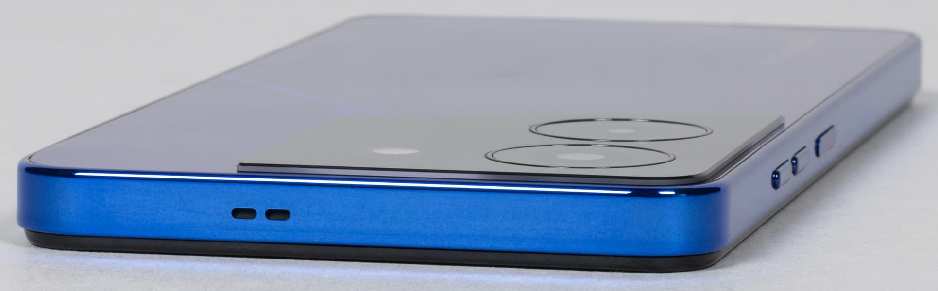 На торце сверху нет ничего, кроме отверстий решетки второго динамика.