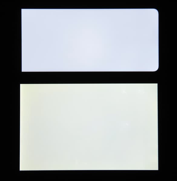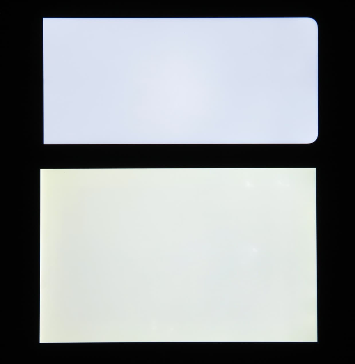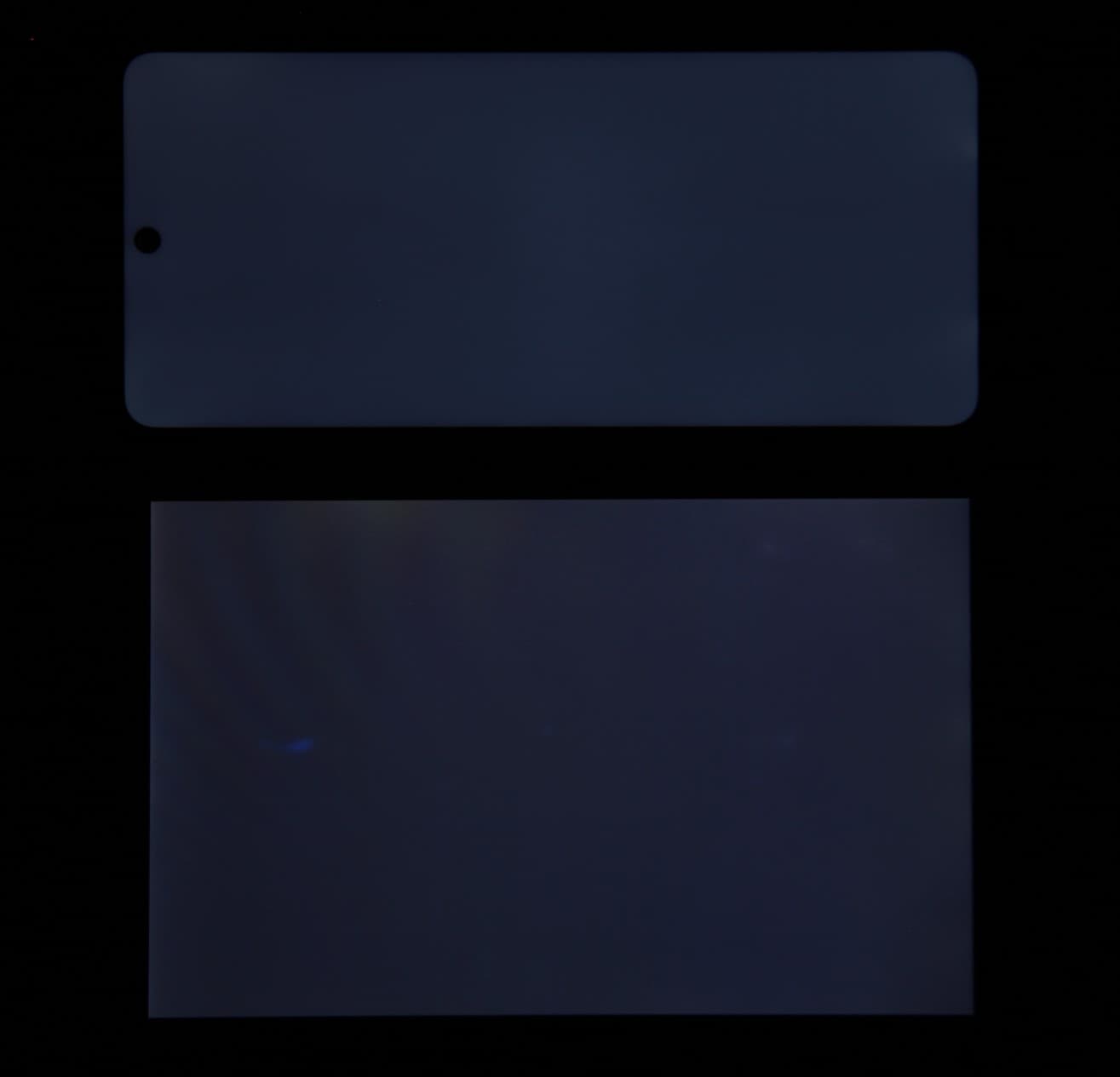 При перпендикулярном взгляде равномерность черного поля средняя (для наглядности яркость подсветки на смартфоне установлена на максимум):