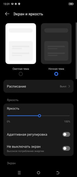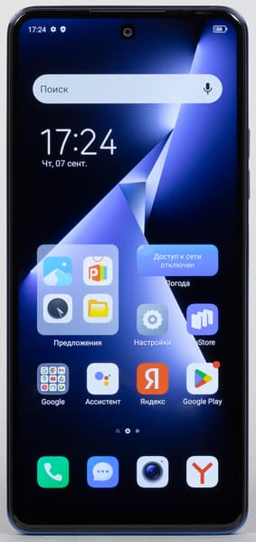 При ручном управлении яркостью и при выводе белого поля во весь экран максимальное значение яркости составило 500 кд/м². Максимальная яркость высокая, значит, учитывая отличные антибликовые свойства, смартфоном можно будет пользоваться даже в солнечный день вне помещения (хотя не все так хорошо, и об этом ниже). Минимальное значение яркости при ручном управлении — 4 кд/м², поэтому в полной темноте яркость можно понизить до комфортного значения. В наличии автоматическая регулировка яркости по датчику освещенности (он находится на фронтальной панели близко к ее верхнему краю правее решетки фронтального громкоговорителя). В автоматическом режиме при изменении внешних условий освещенности яркость экрана как повышается, так и понижается. Работа этой функции зависит от положения ползунка регулировки яркости: им пользователь может попытаться выставить желаемый уровень яркости в текущих условиях. Если оставить все по умолчанию, то в полной темноте функция автояркости уменьшает яркость до 4 кд/м² (темновато), в условиях освещенного искусственным светом офиса (примерно 550 лк) устанавливает на 190 кд/м² (нормально), а условно под прямыми лучами солнца повышает до 500 кд/м² (до максимума, так и нужно). Результат по умолчанию нас не удовлетворил, поэтому мы попробовали повысить яркость в полной темноте. Яркость стала выше, но после цикла повышения внешней освещенности и ее снижения, все вернулось к тем же значениям, что были до вмешательства. Получается, что функция автоподстройки яркости работает более-менее адекватно, но не позволяет пользователю настраивать свою работу под индивидуальные требования. На любом уровне яркости значимая модуляция подсветки отсутствует, поэтому нет и никакого мерцания экрана.