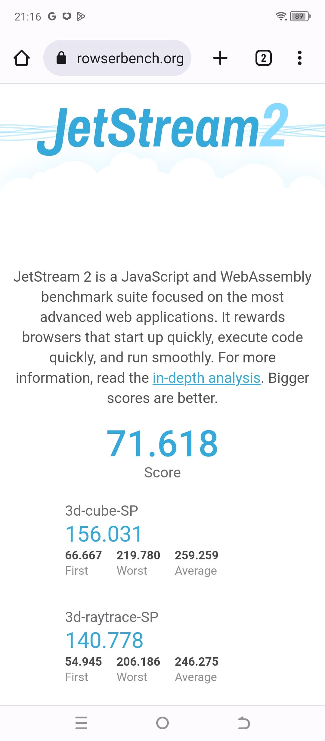 | JetStream (больше — лучше) | 72 | 60 | 87 | 73 | 93 |