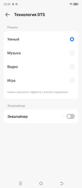 В этом смартфоне установлены стереодинамики, и они выдают максимально громкий и вполне достойный насыщенный яркий звук с широким диапазоном частот. Смотреть кино комфортно. Также сохранен 3,5-миллиметровый аудиовыход для проводных наушников. Есть возможность использования настроек DTS с пресетами и пятиполосный эквалайзер.