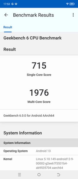 Платформа Helio G99 — достаточно популярная, она производится по техпроцессу 6 нм, но ее лучшие дни давно миновали, по сегодняшним меркам она уже устаревшая и в самом лучшем случае средняя по мощности. В AnTuTu она набирает менее 400 тысяч баллов. Впрочем, уж для плавной работы интерфейса ее мощи точно должно хватать, однако на практике интерфейс почему-то притормаживает.
