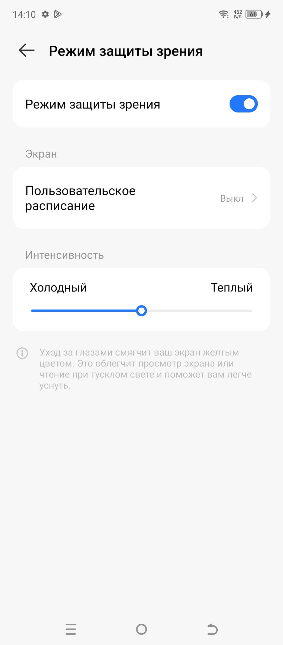 Присутствует настройка, позволяющая снизить интенсивность синей компоненты.