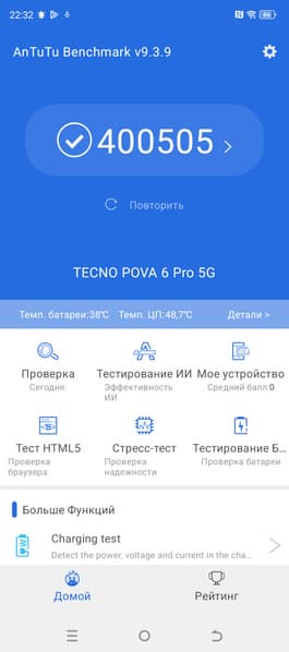 Tecno Pova 6 Pro 5G на российском рынке продается за 28 тысяч рублей (версия с 12/256 ГБ памяти). Интересный внешний вид, без сомнения способный привлечь молодежь, вкупе с достойной среднеуровневой технической оснащенностью и приемлемой производительностью делают этот смартфон довольно интересным предложением в среднем ценовом сегменте. У него качественный AMOLED-экран, стереозвук, есть поддержка всех необходимых сетевых стандартов. Аппаратная платформа не впечатляет, но для такого уровня сойдет. Камера и вовсе хороша. Смартфон полностью отвечает возлагаемым на него задачам, рассчитан на широкую аудиторию и стоит вполне адекватных денег.