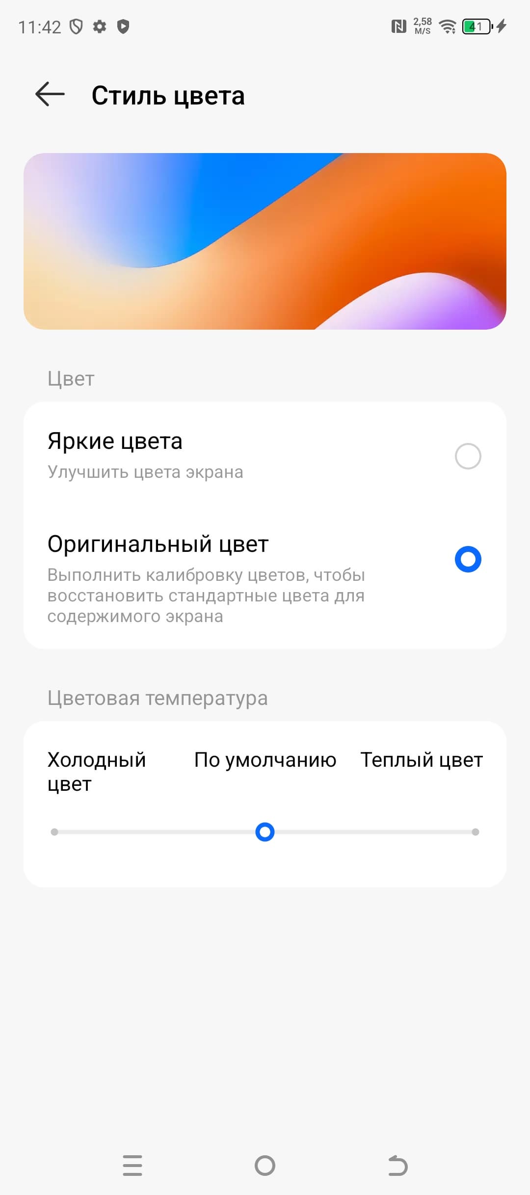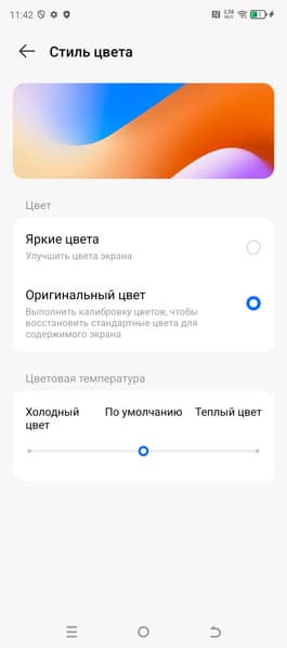 Фотография выше получена после выбора профиля Оригинальный цвет в настройках экрана. Всего профилей два.