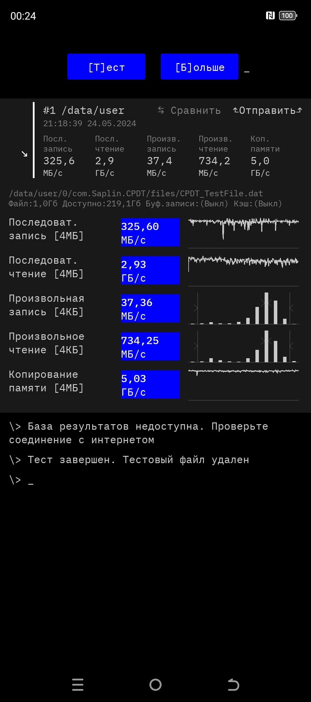 Результаты тестирования скорости памяти: