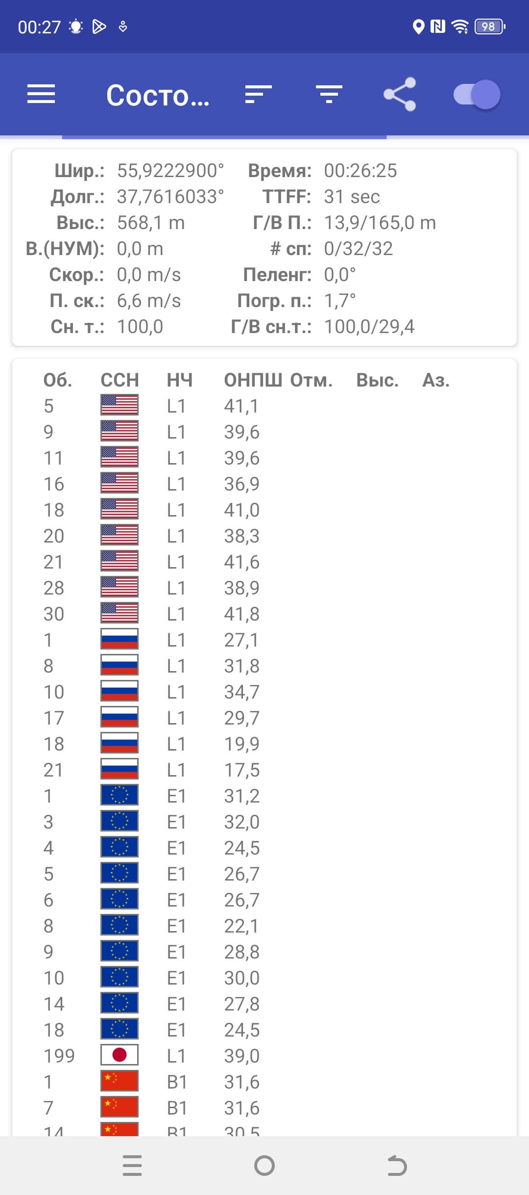- GPS, Глонасс, BDS, Galileo, QZSS