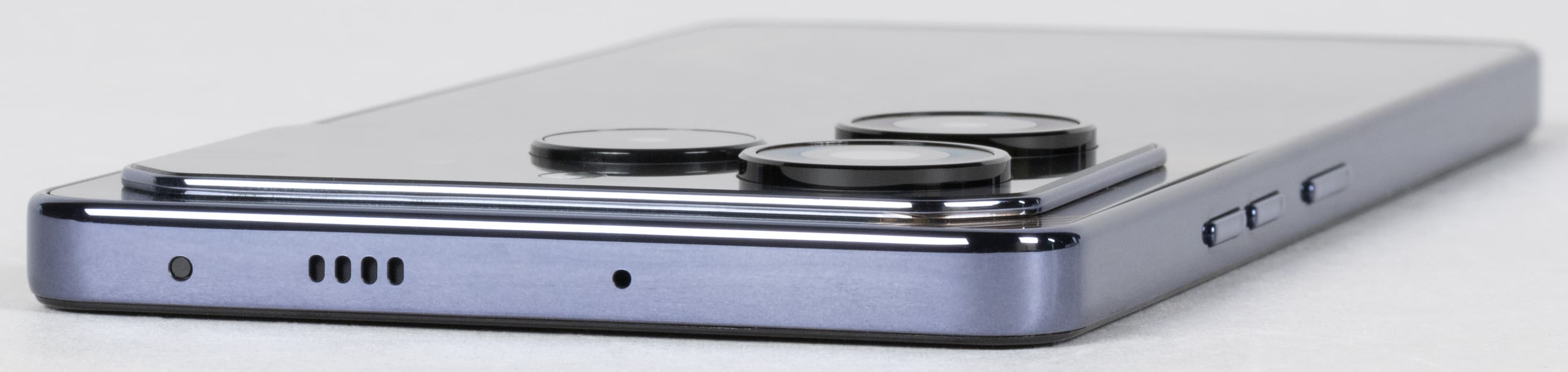 Верхний торец отдан под дополнительный микрофон и второй динамик, также здесь присутствует глазок ИК-порта.