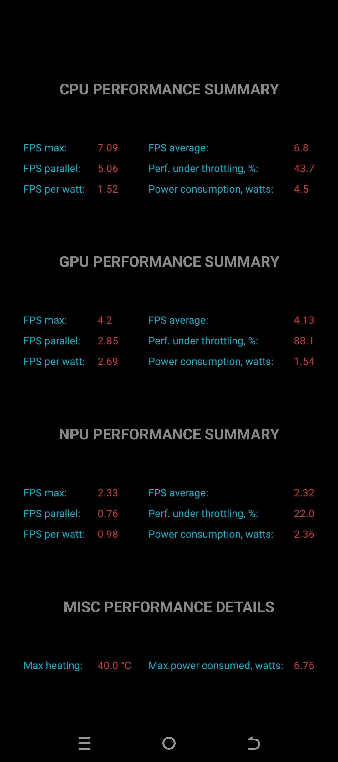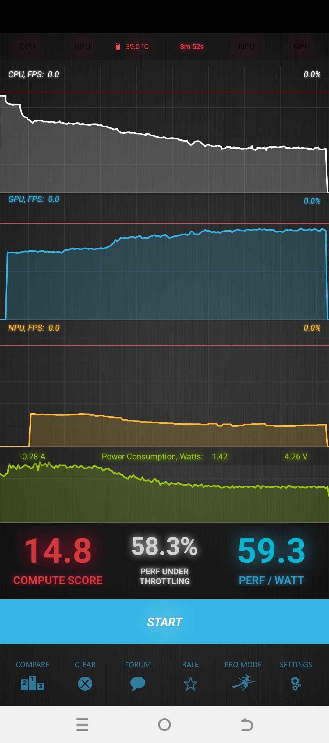 Тест на снижение производительности при нагреве мы проводим с помощью программы Burnout Benchmark, которая позволяет нагружать CPU, GPU и NPU: